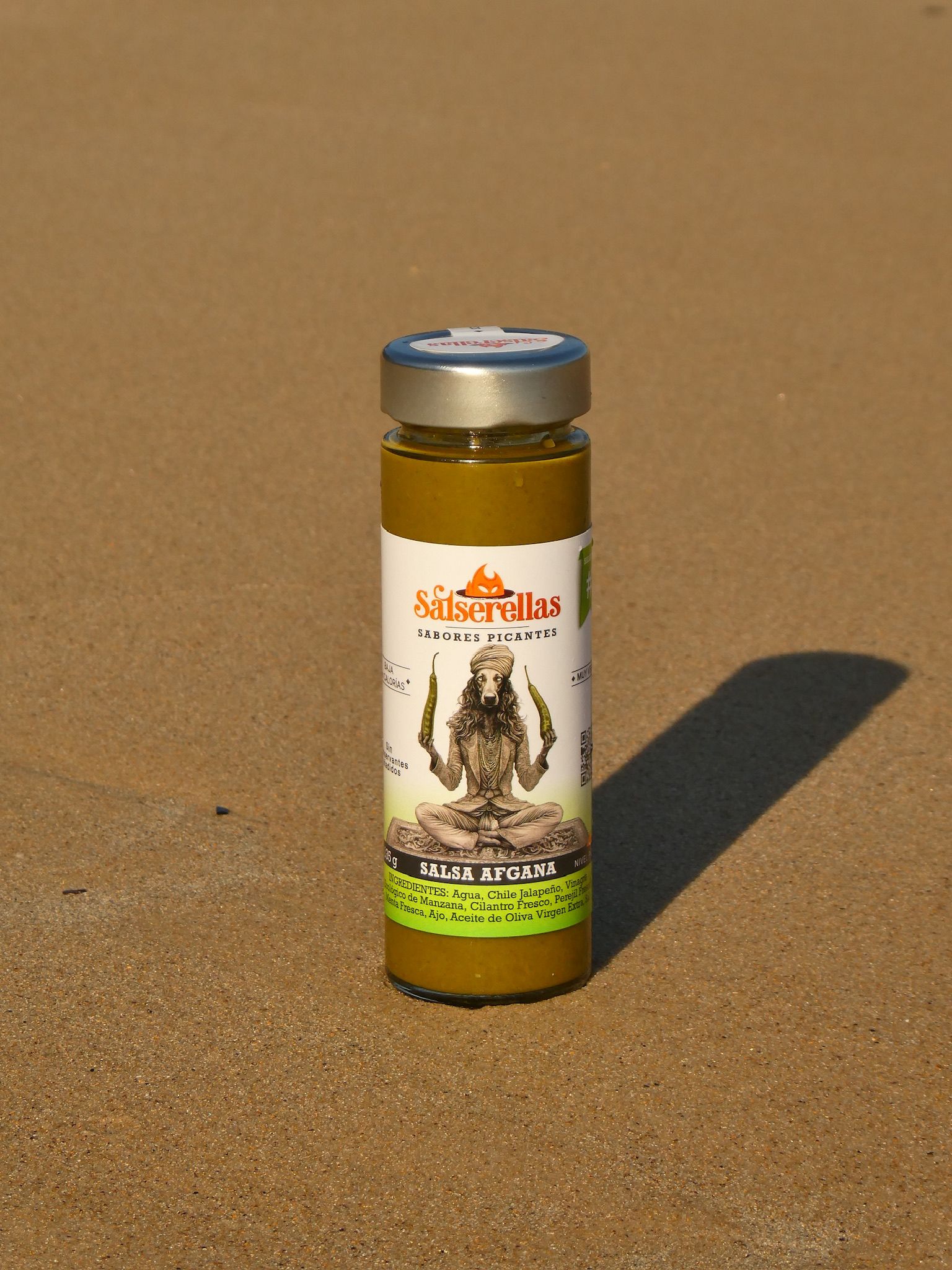 La Salsa Afgana, inspirada en el chutney-e-sabz, es una salsa tradicional con profundas raíces en la cocina de Afganistán, influenciada por las tradiciones persas e indias. Elaborado con cilantro, menta, perejil y chile verde, este condimento refleja la riqueza de los ingredientes locales y el gusto afgano por los sabores frescos y picantes. Su origen se remonta a las antiguas rutas comerciales que conectaban Asia Central con el subcontinente indio, donde los chutneys eran esenciales en la gastronomía.